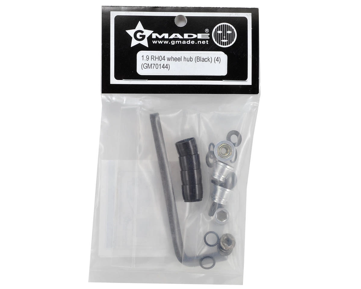 This is an optional Gmade 1.9 RH04 Wheel Hub Set, and is intended for use with the Gmade VR01 1.9 beadlock wheels, as well as most other 1.9 size crawler wheels. These machined aluminum hubs provide you with a wheel nut system that keeps your wheels firmly attached to the axles, and at the same time provides an awesome scale look for your 1.9 class rig.
