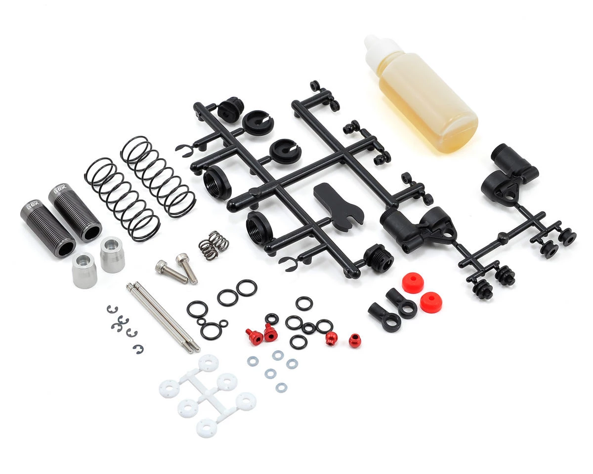 - Lower shock ends includes red anodized aluminum balls