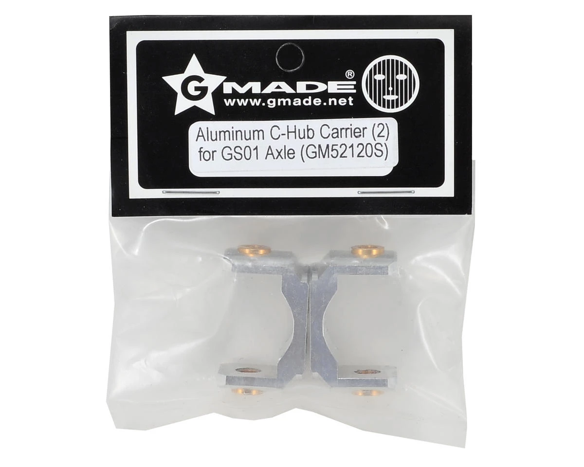 Gmade Aluminum C-Hub Carrier. These aluminum c-hubs are precision machined billet aluminum and are compatible with the GS01 axles found on the Komodo and Sawback trucks. Compared to the stock c-hubs, these hubs allow the standard 90° setting, as well as an increased 98° setting that maintains the correct caster geometry and positions the center driveshaft at a more efficient angle.
