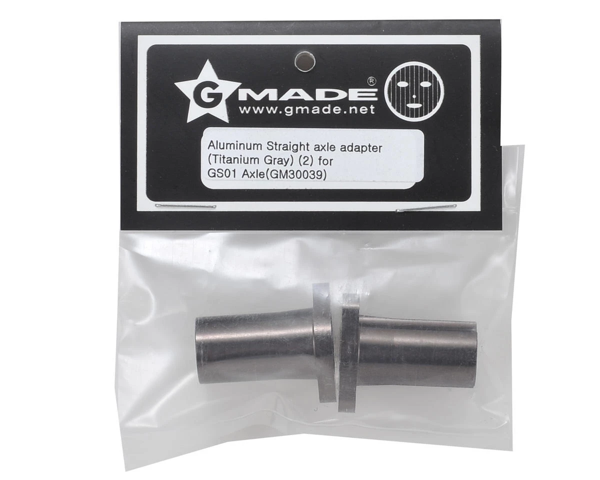 Gmade Aluminum Straight Axle Adapter. These aluminum rear hubs are precision machined billet aluminum and are compatible with the GS01 axles found on the Gmade Komodo and Sawback trucks. The one piece design is compatible with the stock axles and bearings, while the heavy duty aluminum material helps to improve durability.