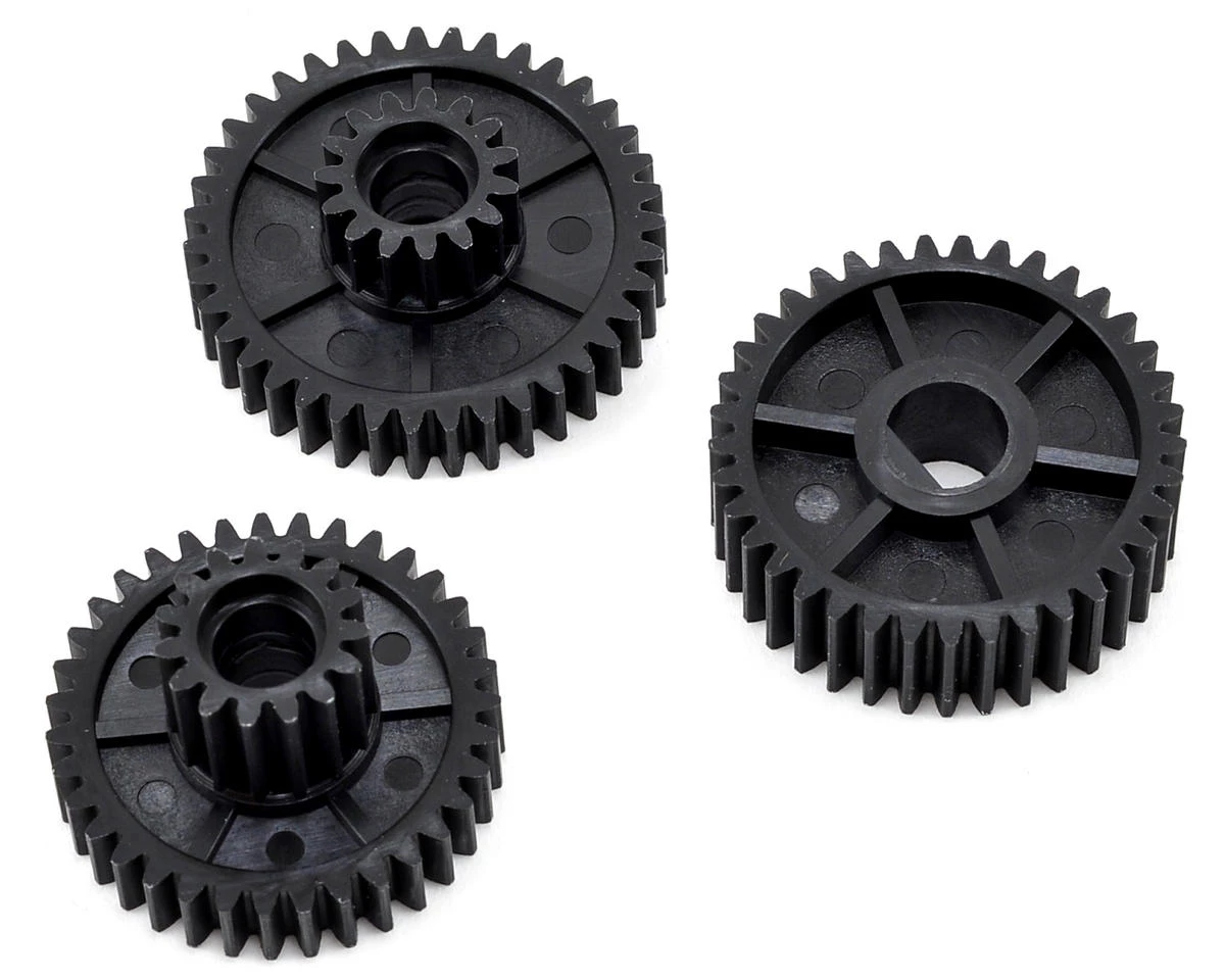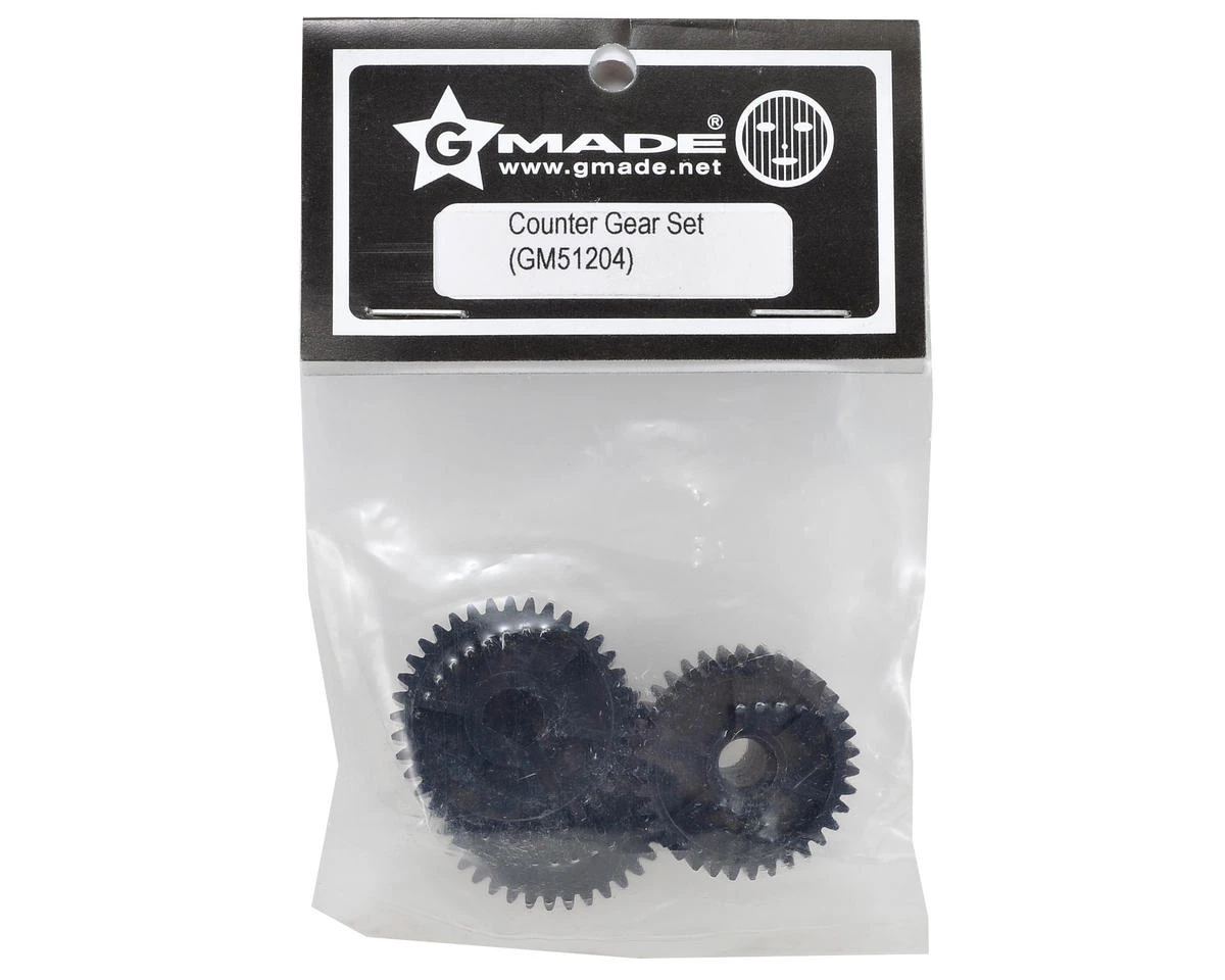 This is a replacement Gmade Counter Gear Set, and is intended for use with the Gmade R1 Rock Buggy. Includes one 39/15 tooth counter gear, one 35/15 tooth counter gear and one 37 tooth counter gear.