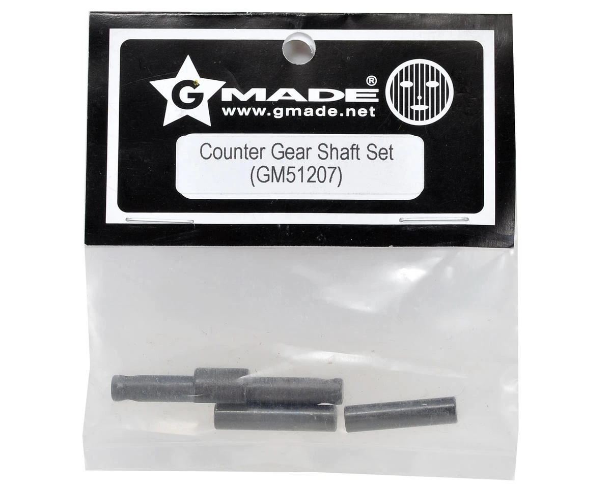 This is a replacement Gmade Counter Gear Shaft Set, and is intended for use with the Gmade R1 Rock Buggy. Package includes one 5x21mm shaft, one 5x23mm shaft and one 5x43mm shaft.