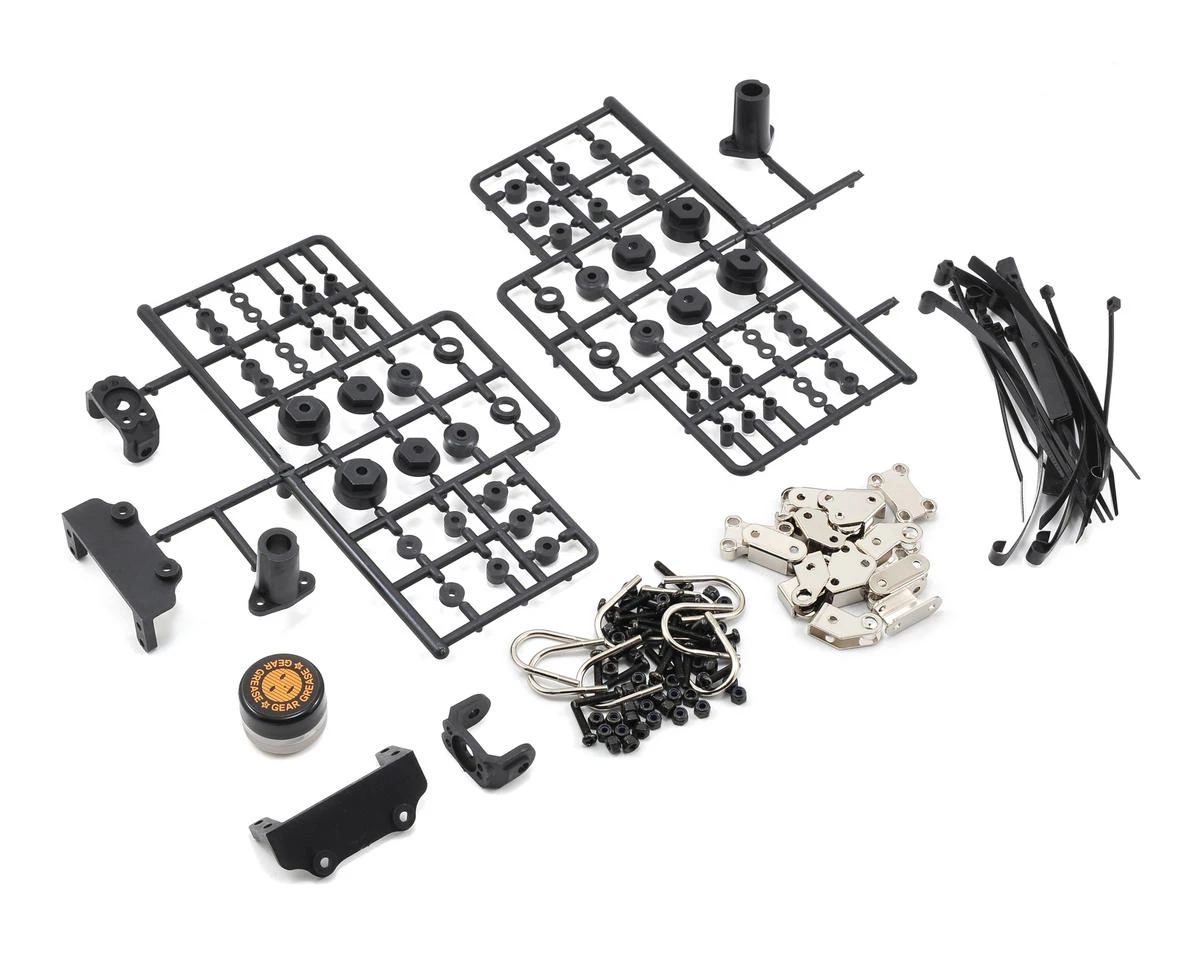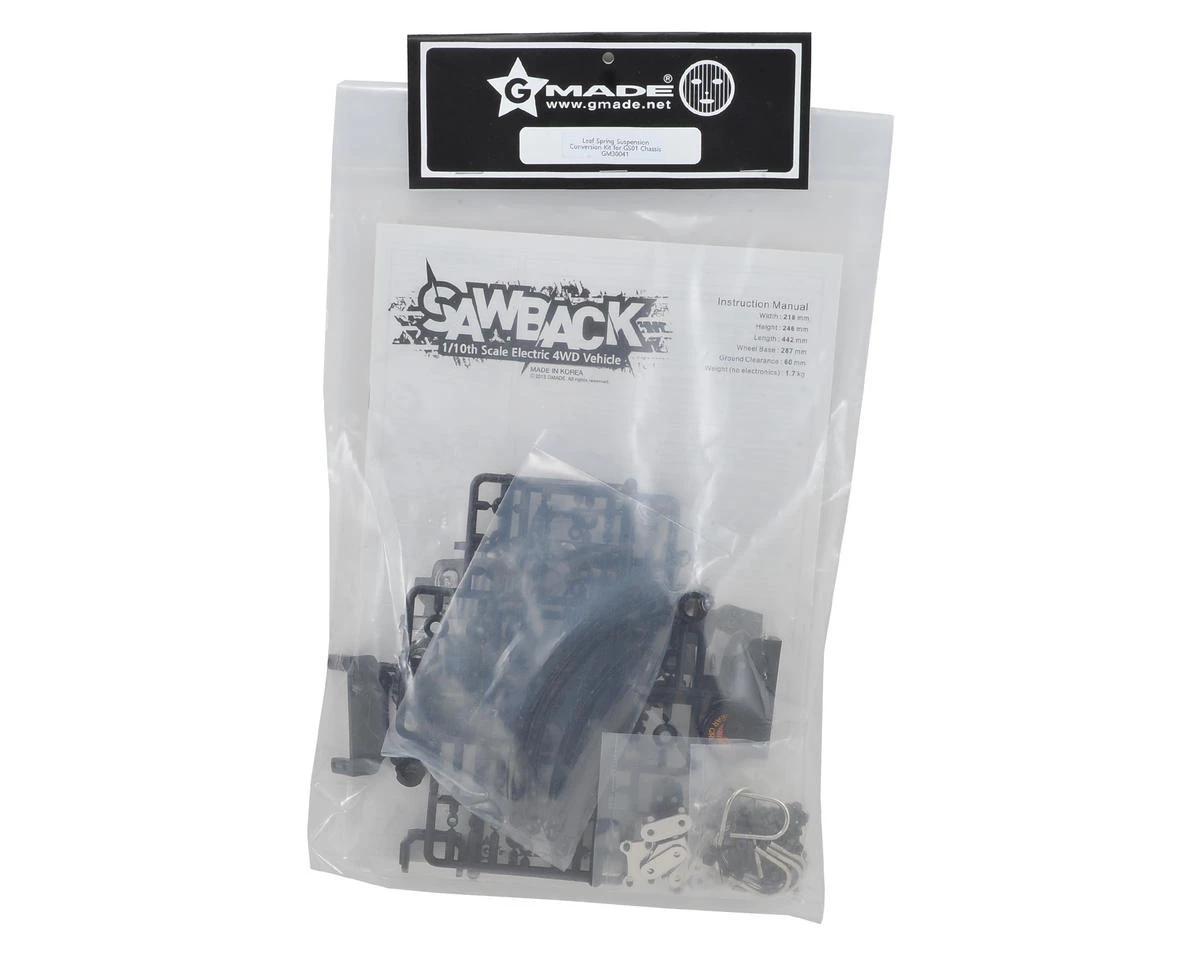 The Gmade GS01 Leaf Spring Suspension Kit will allow you to convert your 4-link equipped GS01 rig with a 287mm wheelbase to a leaf spring suspension setup. Leaf spring suspension limits wheel travel, but provides a level of scale detail that cannot be matched with a 4 link setup.
