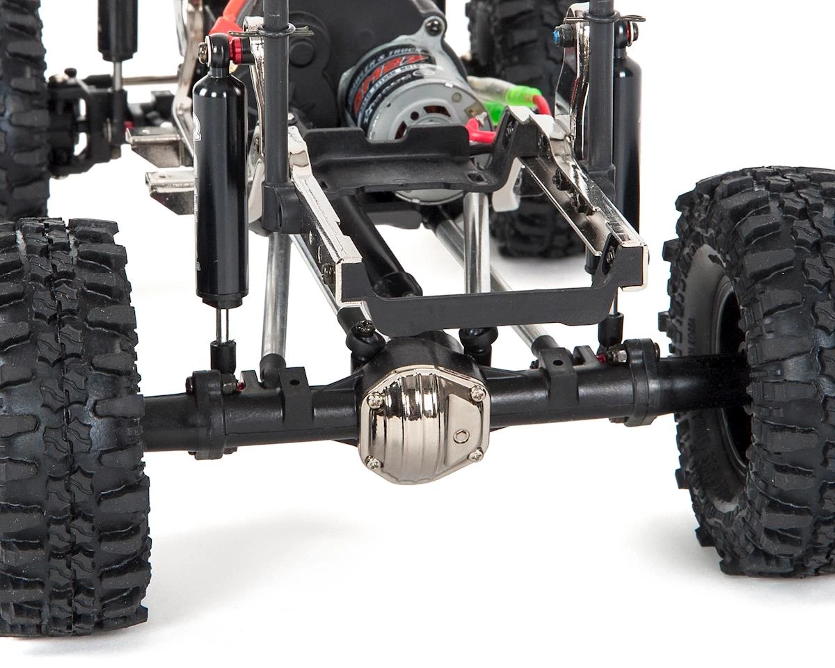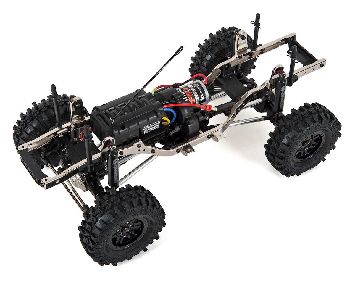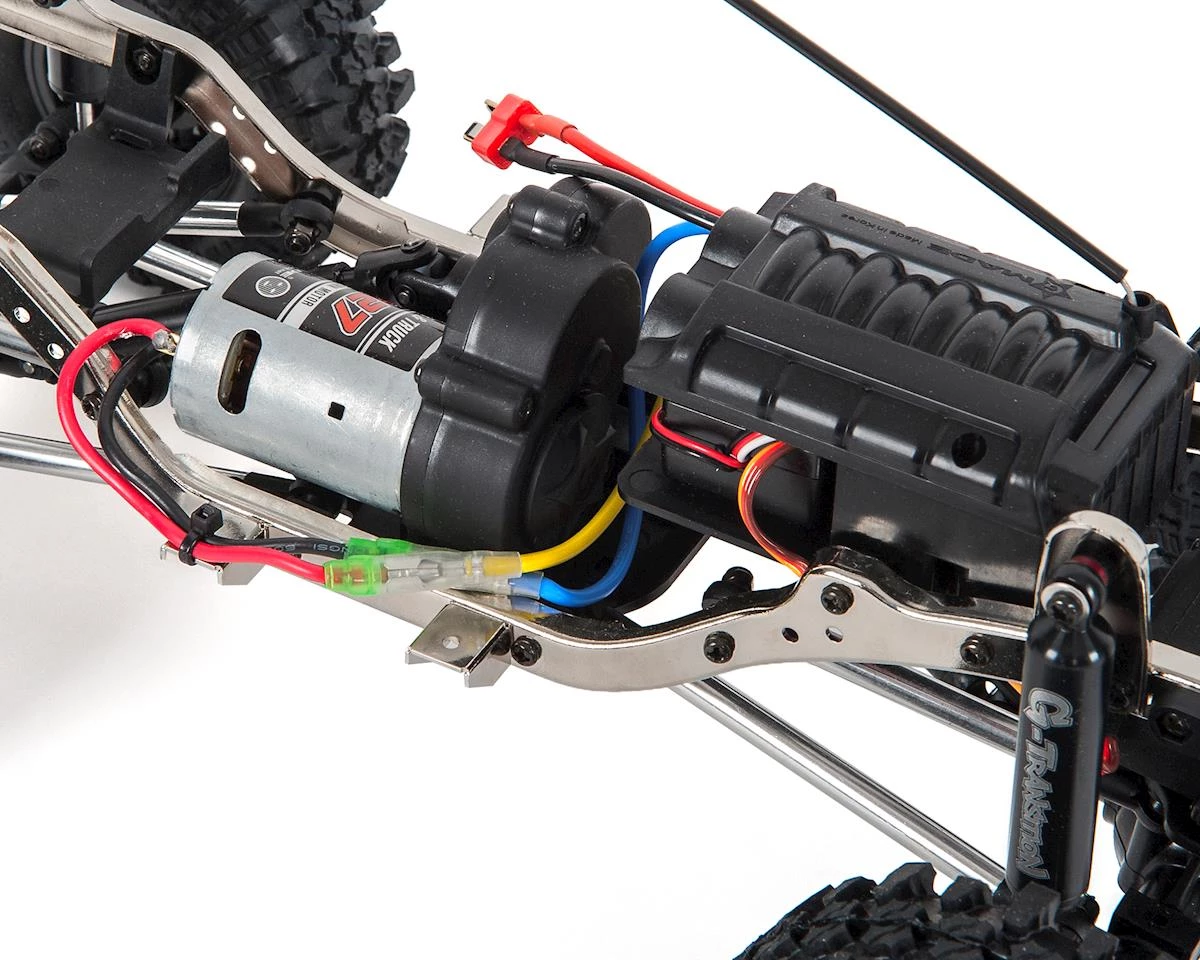 The Gmade Komodo 1/10 Ready to Run Rock Crawler is built off of a steel, nickel plated frame and includes the awesome G-Transition internal spring shocks for unmatched scale detail and crawling prowess. Another feature that sets this truck apart from the crowd is the included scale accessories. Roof rack, snorkel, sand ladders, grille, heavy duty front and rear bumpers, rear view mirrors, windshield wiper grille, light buckets and more are all included as standard accessories to give you the most realistic experience possible.Â
