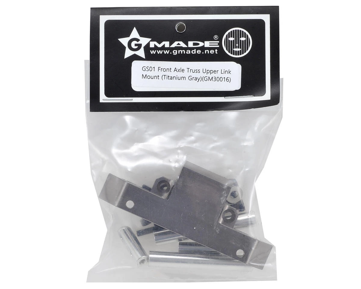 Gmade Komodo Aluminum Front Axle Truss Upper Link Mount. This optional precision machined front axle truss link mount adds strength to the axle housing and provides a solid mounting point for the upper suspension links. Plus, the included servo mount posts help to create a strong and rigid servo mounting point. This is a must have option for any rig with a high torque servo. Additionally, this truss includes a set of 44mm front upper links, making this mount a great value.