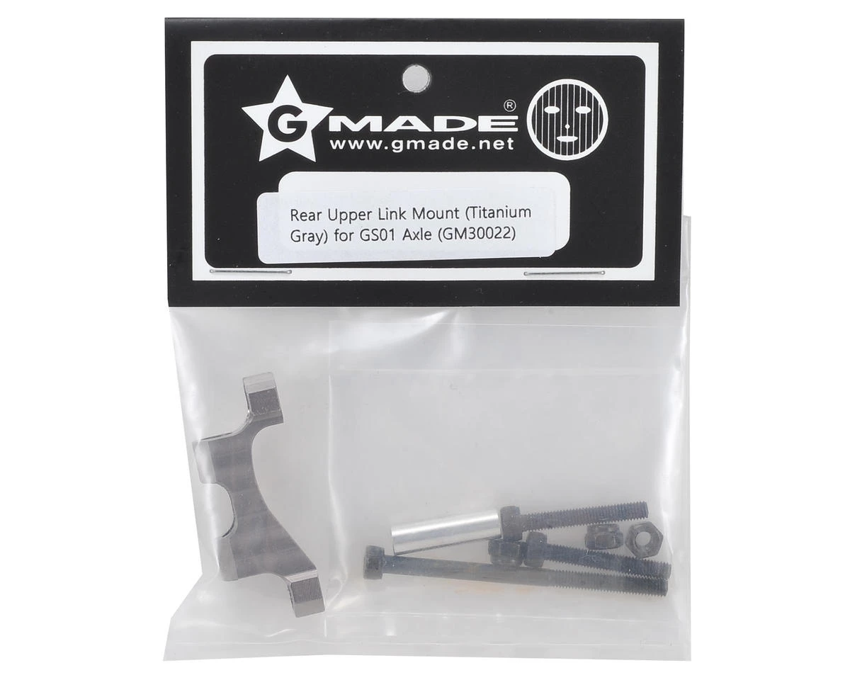 Gmade Komodo Aluminum Rear Upper Link Mount. This optional precision machined rear link mount provides a solid mounting point for the upper suspension links, and is a great value for crawlers that want a durable link mount, without the added weight of a truss.