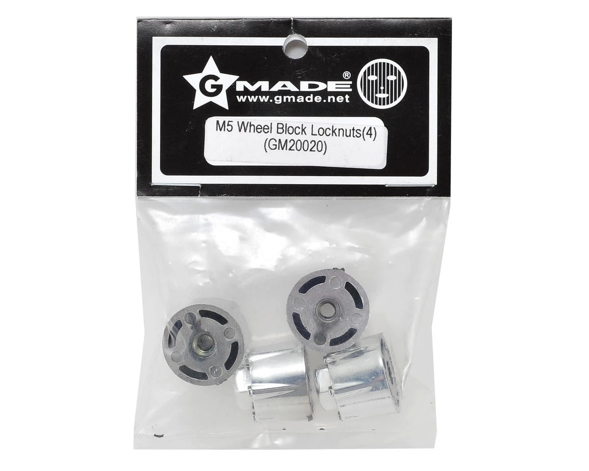This is a pack of four Gmade M5 Wheel Block Locknuts, and are intended for use with Gmade 1/8 scale crawler wheels.