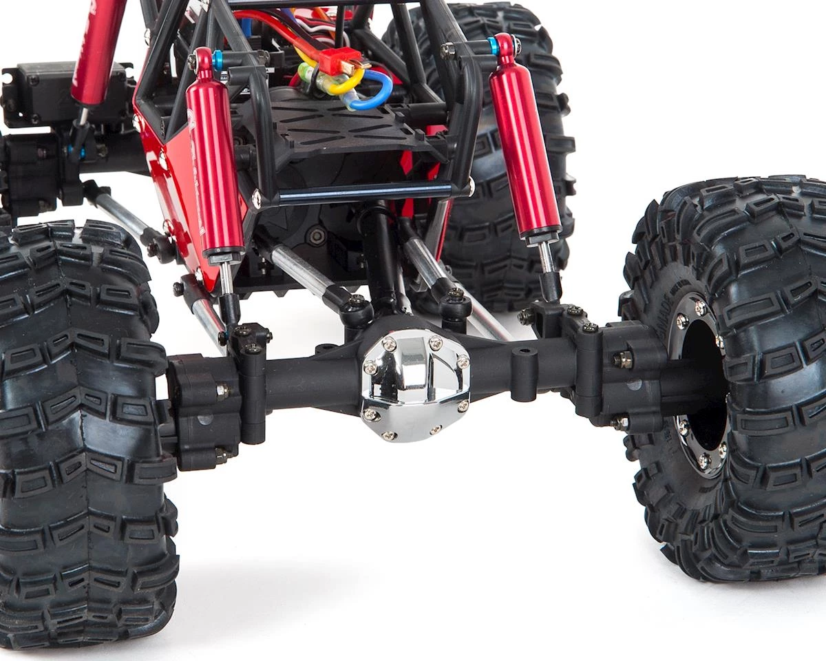 The molded composite tube frame features an incredibly realistic appearance, and red body panels allow you to add a stylish touch to your rig. But this design does more than look the part, it provides protection to your electronics, and keeps everything safe when you tumble down the rocks. Other notable features include tough universal slider shafts that deliver the power from the transmission to the unique “Portal” high clearance front and rear axles. Plus, with a fully sealed transmission, the awesome G-transition shocks, and standard 2.2 size wheels, the Gmade R1 delivers high performance fun on any terrain.