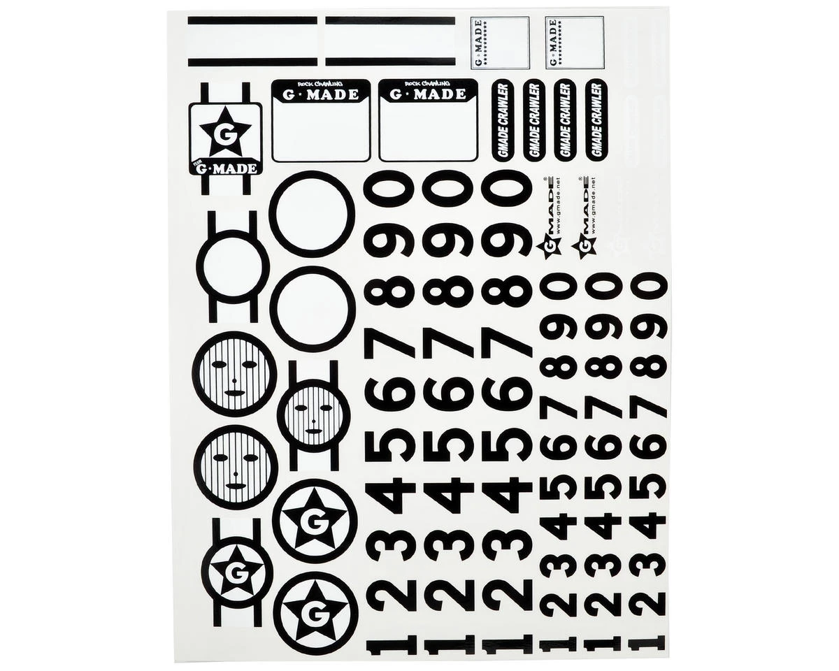 This is a replacement Gmade Decal Sheet, and is intended for use with the Gmade R1 Rock Buggy.