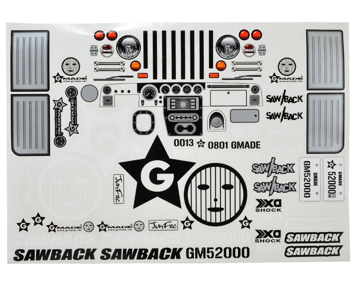 This is an optional Gmade Sawback GS01 Decal Sheet.