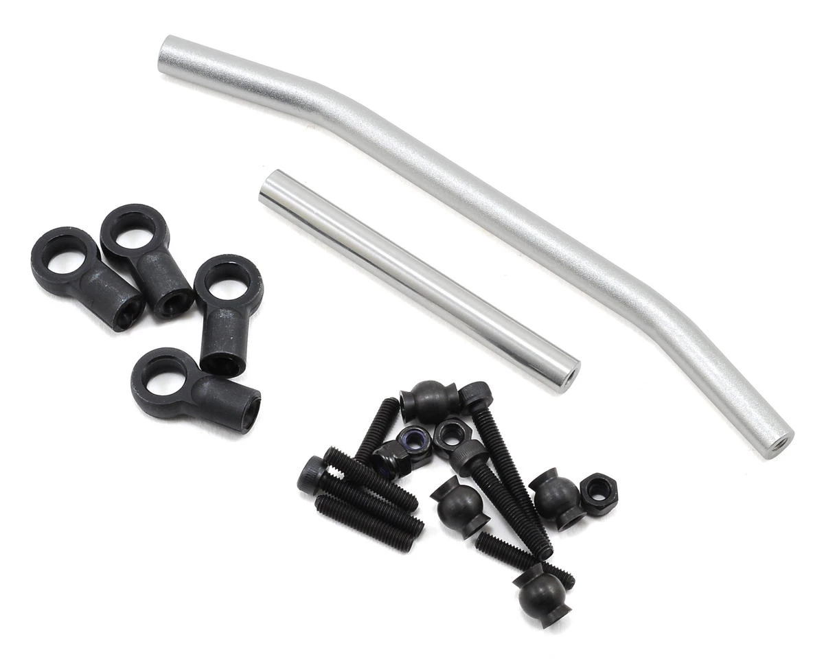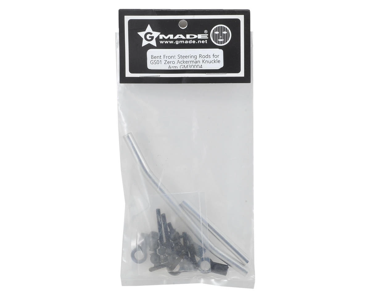 The Gmade Zero Ackerman Bent Front Steering Rods are a required accessory when using the Zero Ackerman Knuckle Arm (GMA30038). These steering rods help to achieve the correct geometry with the increased steering angle that is created by the zero ackerman arms.