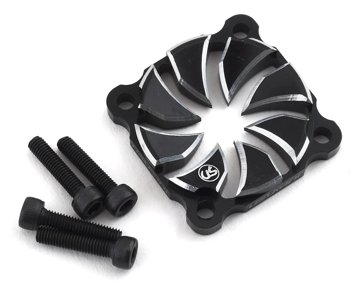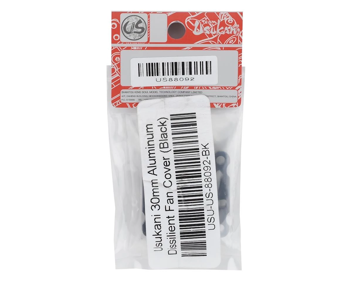 This is a Usukani Black Aluminum Dissilient Fan Cover, intended for use with 1/10 scale drift cars. Precision machined with silver chamferred edges, this cover helps to protect the fan blades of a fan while adding a custom look to your ESC or motor fan assembly. Available in either standard 25mm or 30mm sizes.