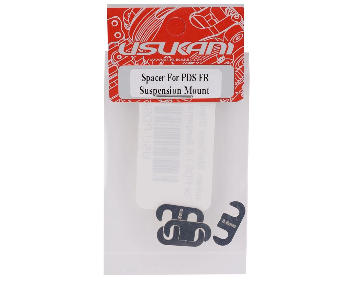 This is a replacement set of four Usukani 0.5mm Stainless Steel Spacers, which are uses for the front suspension mounts on the Usukani PDS drift car.